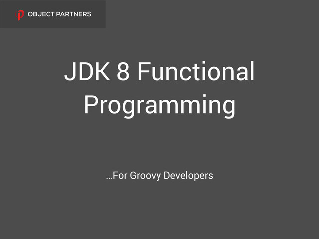 JDK 8 Functional Programming …For Groovy Developers