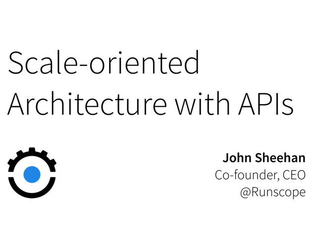 Scale-oriented Architecture with APIs John Sheehan Co-founder, CEO @Runscope