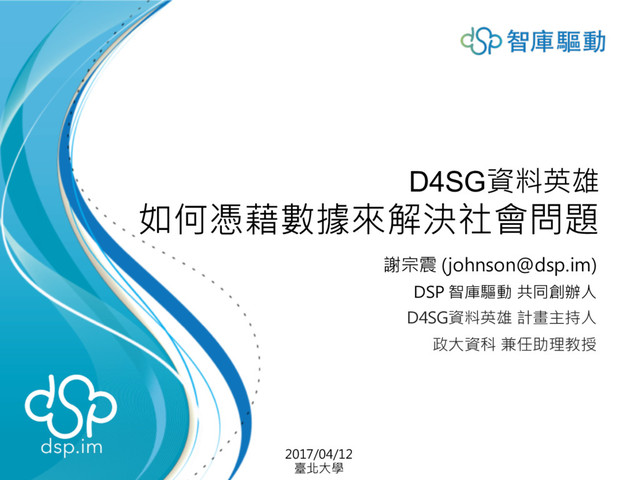 常常在想念統計這麼久,如果工作內容可以跟資料分析相關,那就太棒了。2014年一場高雄氣爆,初次體會資料分析是可以幫忙救災的,那時腦海中就跳出了一個概念「Data for Social Good」,所以就誕生了D4SG資料英雄計畫 (d4sg.org)。這場演講將會跟同學們分享怎麼應用你已經會的統計以及你還不會的統計方法,完成資料力做公益的任務,告訴你走出象牙塔的統計學,可以為誰而戰。
