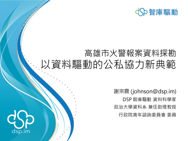 ) DSP 智庫驅動 資料科學家 政治大學資科系 兼任助理教授 行政院青年諮詢委員會