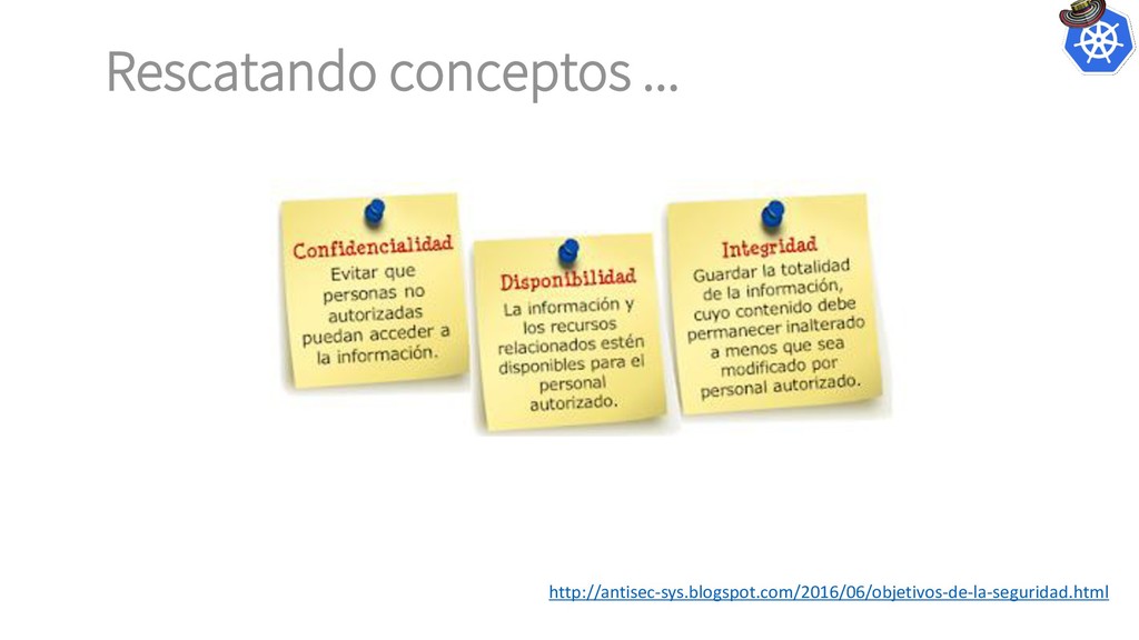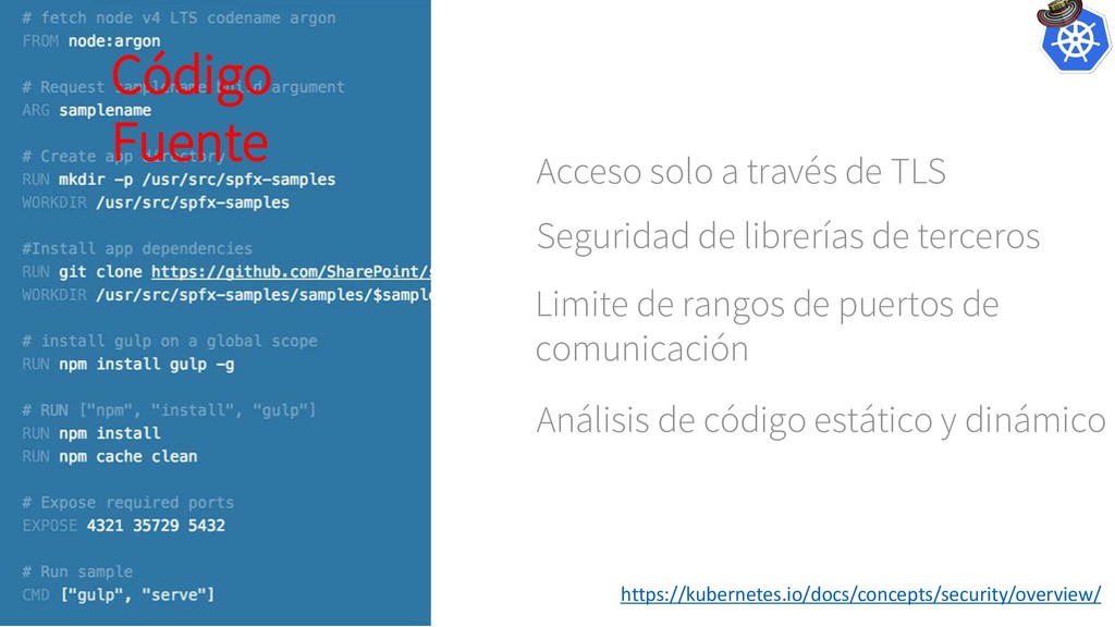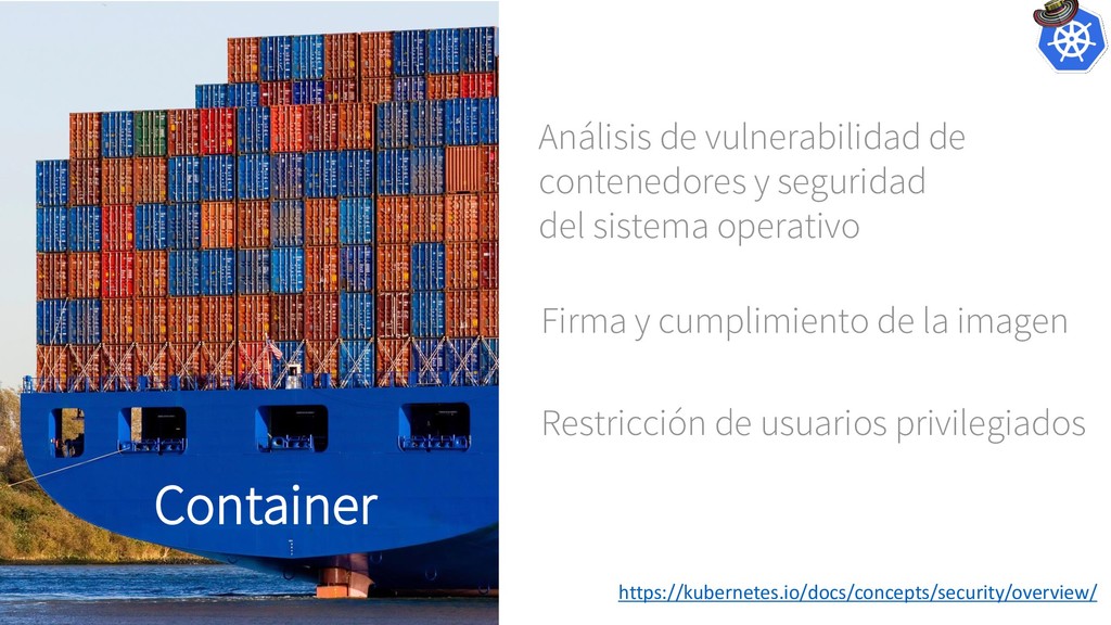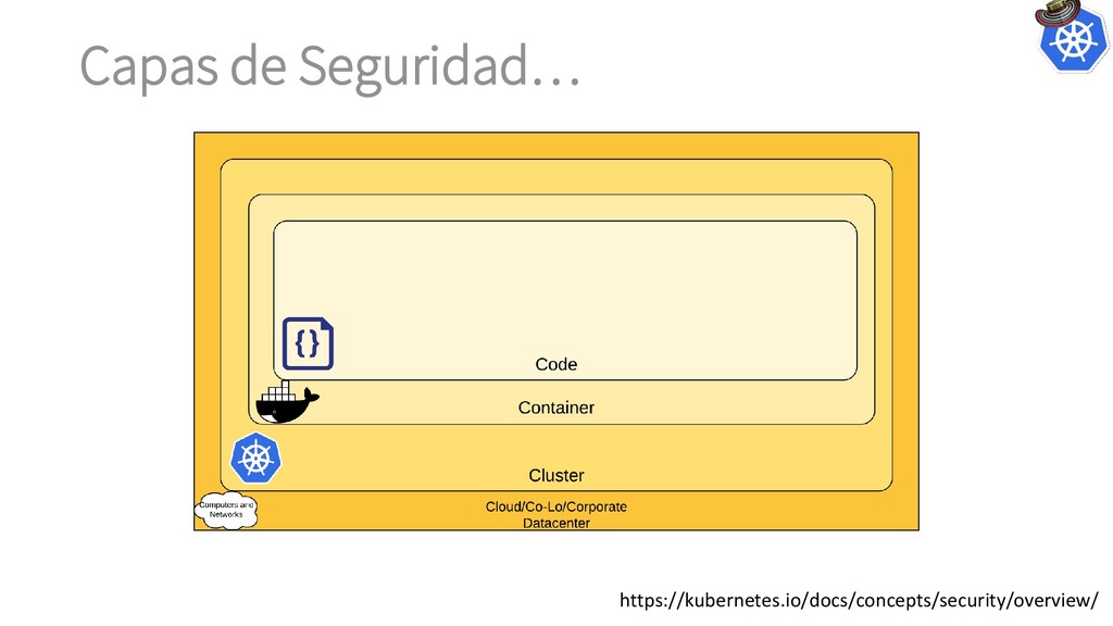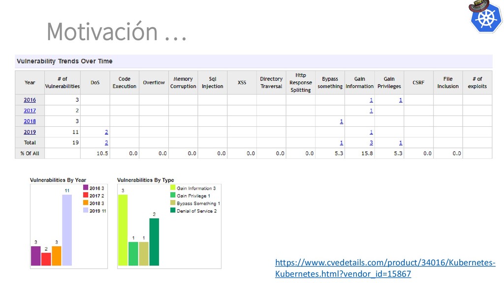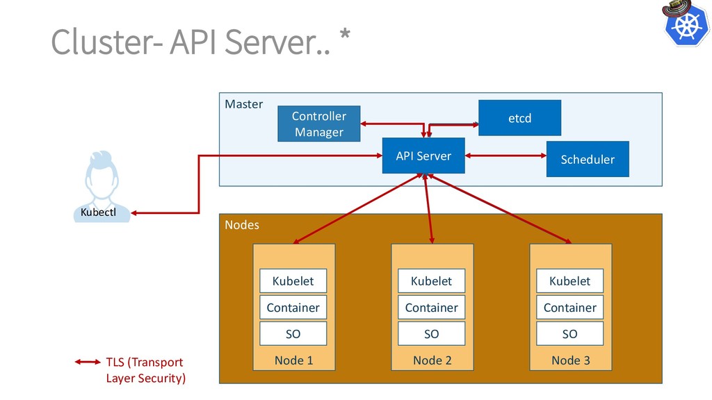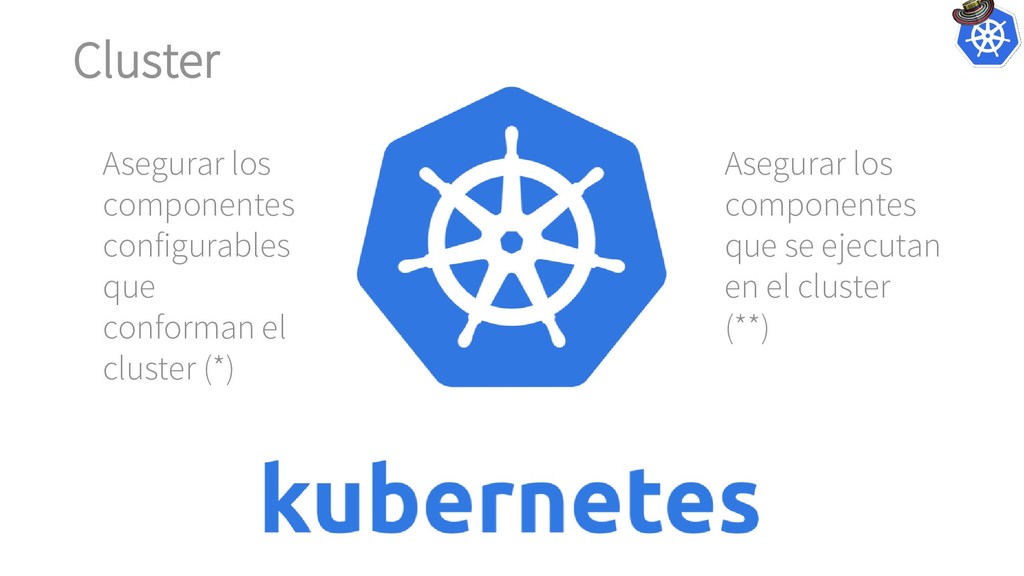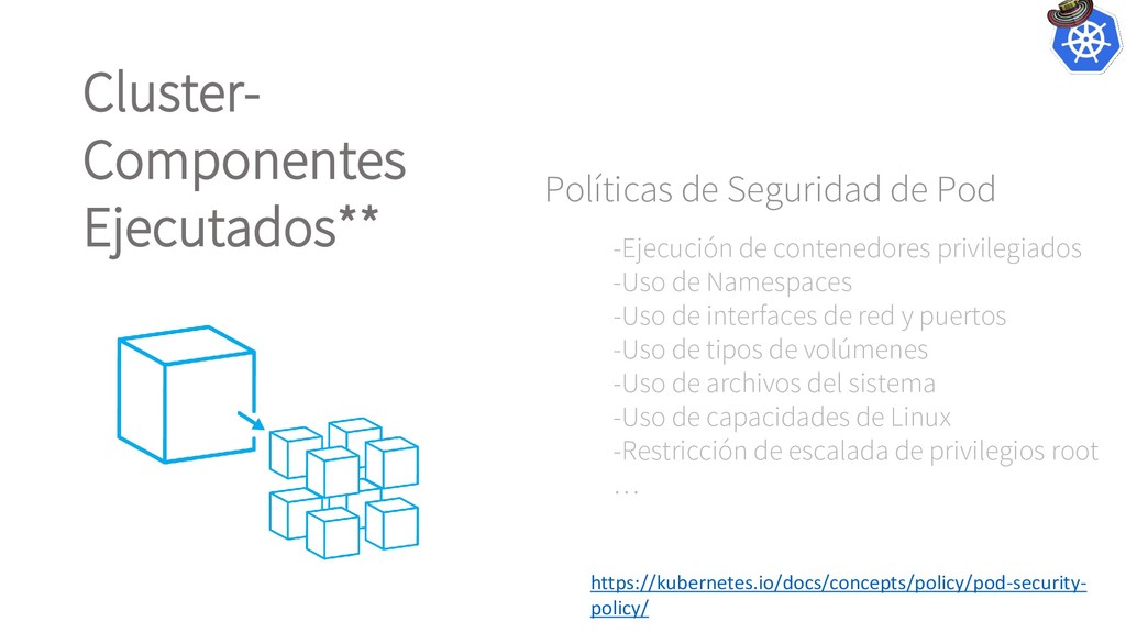 etcd Scheduler Node 1 SO Container Controller Manager Kubelet Node 2 SO Container Kubelet Node 3 SO Container Kubelet Kubectl API -Delega la autorización, API Server Anónimo “enabled”, limite De uso -Token “enabled”, limite de Uso -Certificado “enabled”, Acceso a certificados Firmados CA