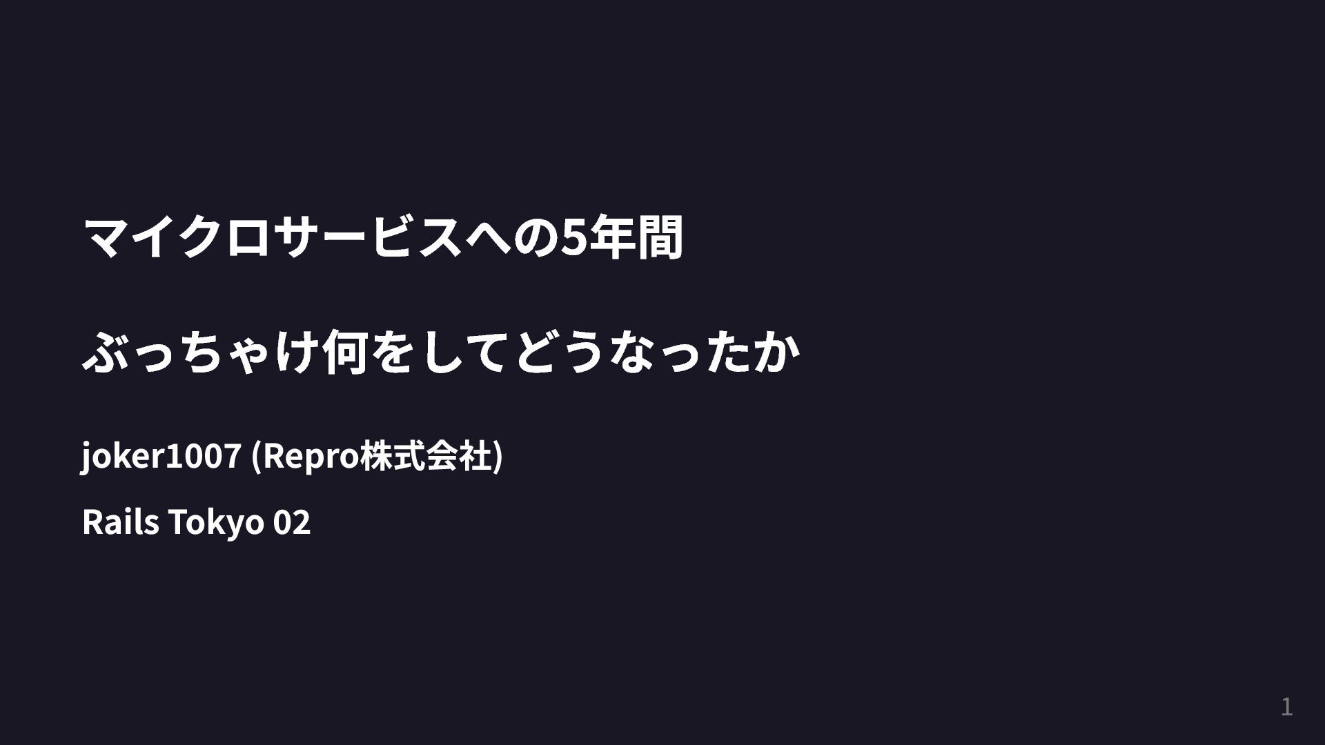 マイクロサービスへの5年間 ぶっちゃけ何をしてどうなったか joker1007 (Repro株式会社) Rails Tokyo 02 1