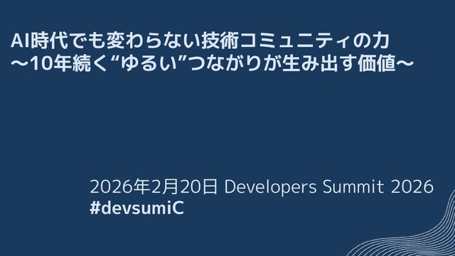 AI時代でも変わらない技術コミュニティの力 ~10年続く“ゆるい”つながりが生み出す価値~ 2026年2月20日 Developers Summit 2026 #devsumiC