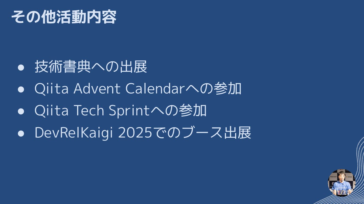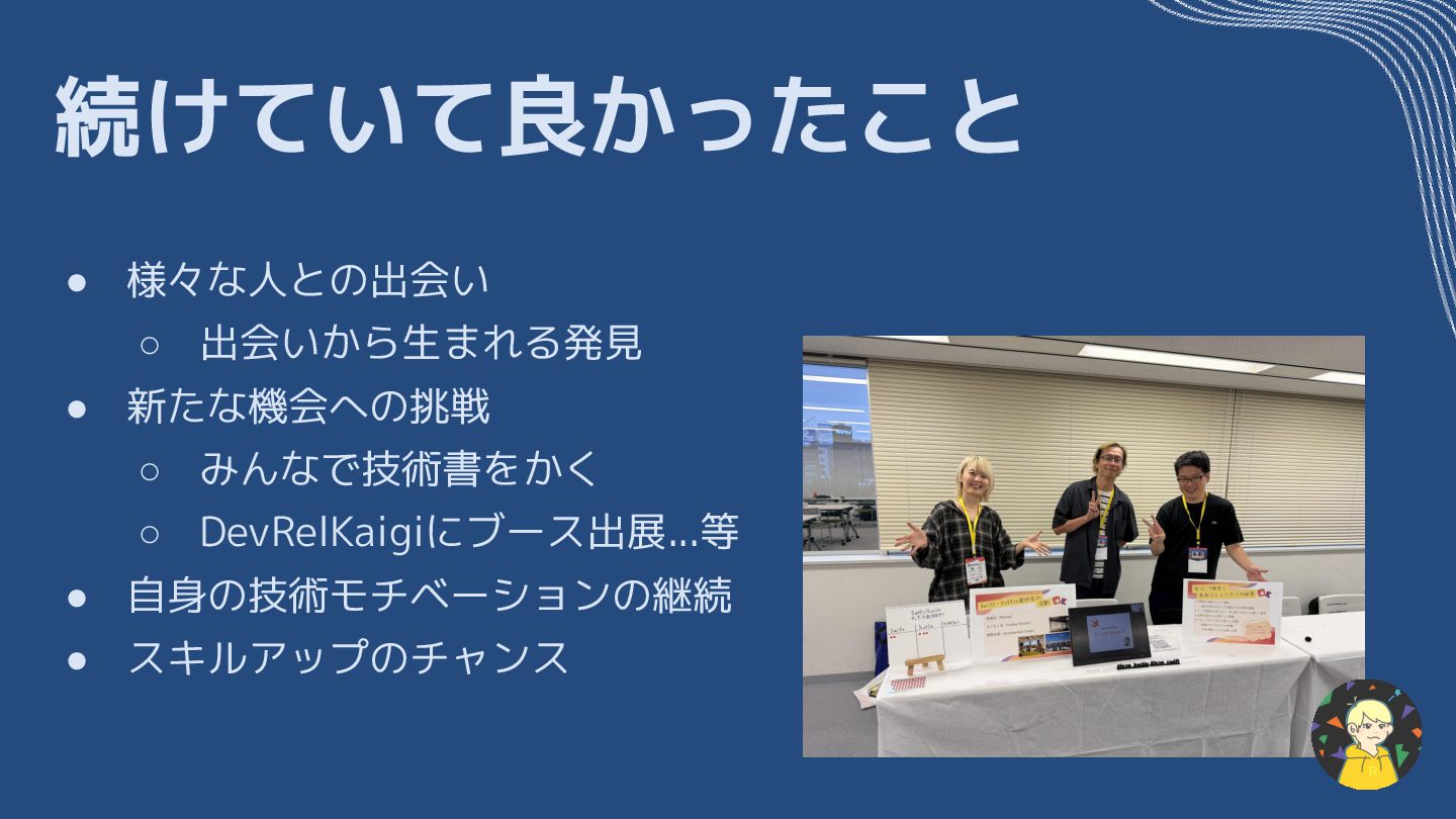 DevRelKaigiにブース出展...等 • 自身の技術モチベーションの継続 • スキルアップのチャンス