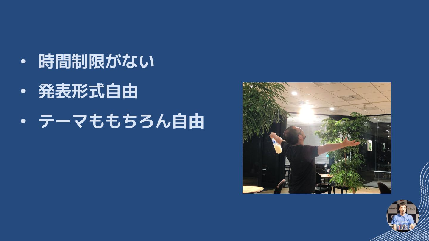 • 時間制限がない • 発表形式自由 • テーマももちろん自由