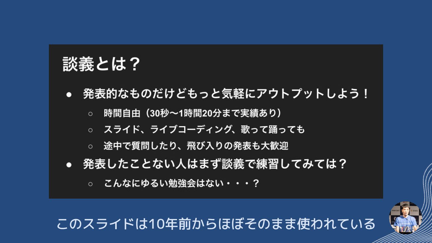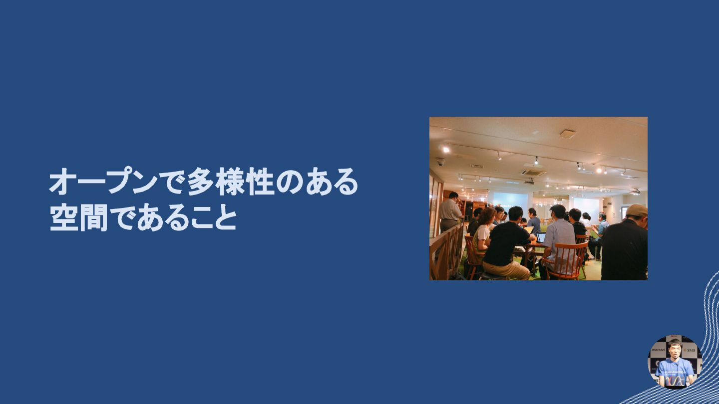 • 初心者にもベテランにも優しい談義という登壇形式 ◦ 話したいことができたら誰でも話しに来られる • 会場を様々な会社様からお借りして開催 ◦ 会場のエンジニアも巻き込んで、コミュニティがどんど ん大きくなっていく ◦