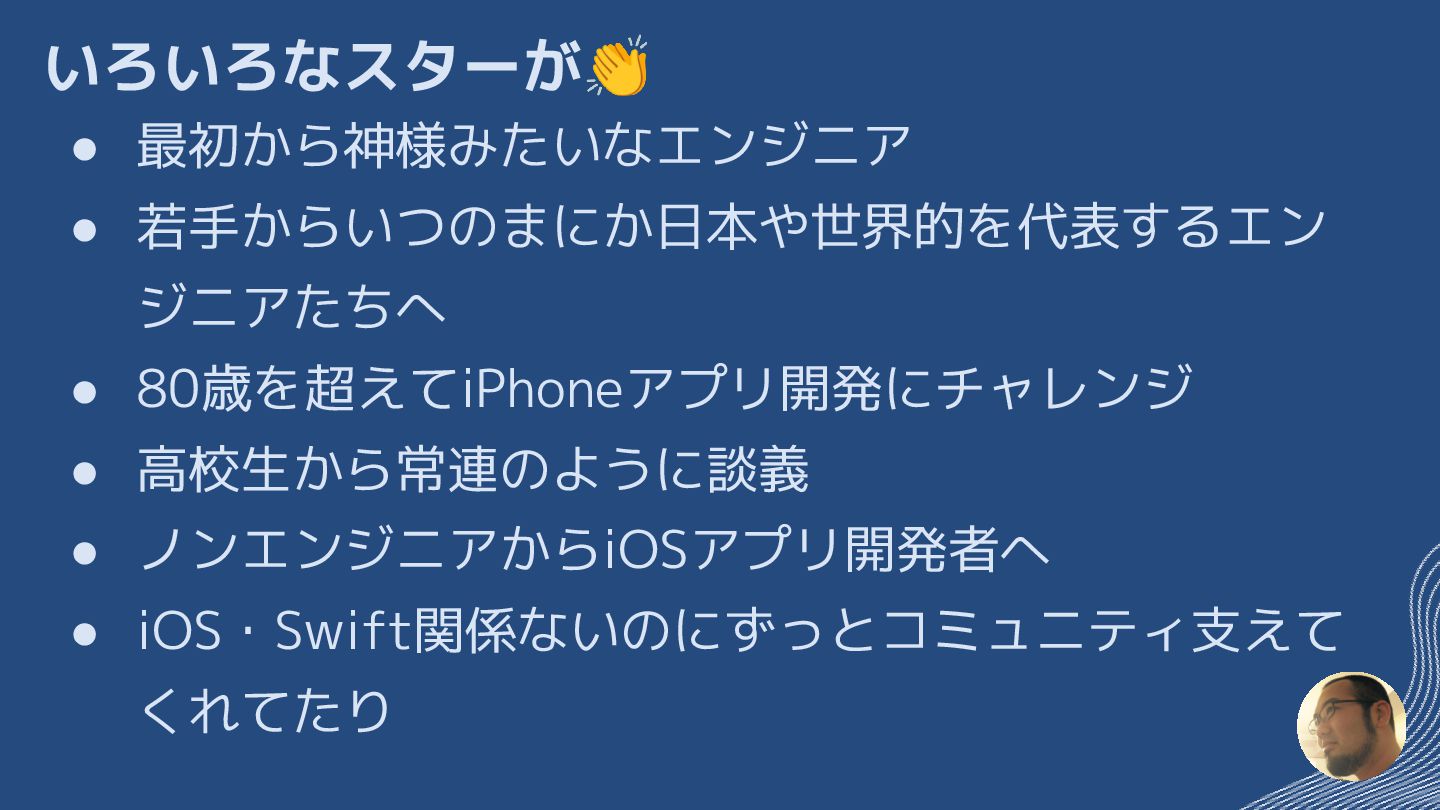 • ノンエンジニアからiOSアプリ開発者へ • iOS・Swift関係ないのにずっとコミュニティ支えて くれてたり