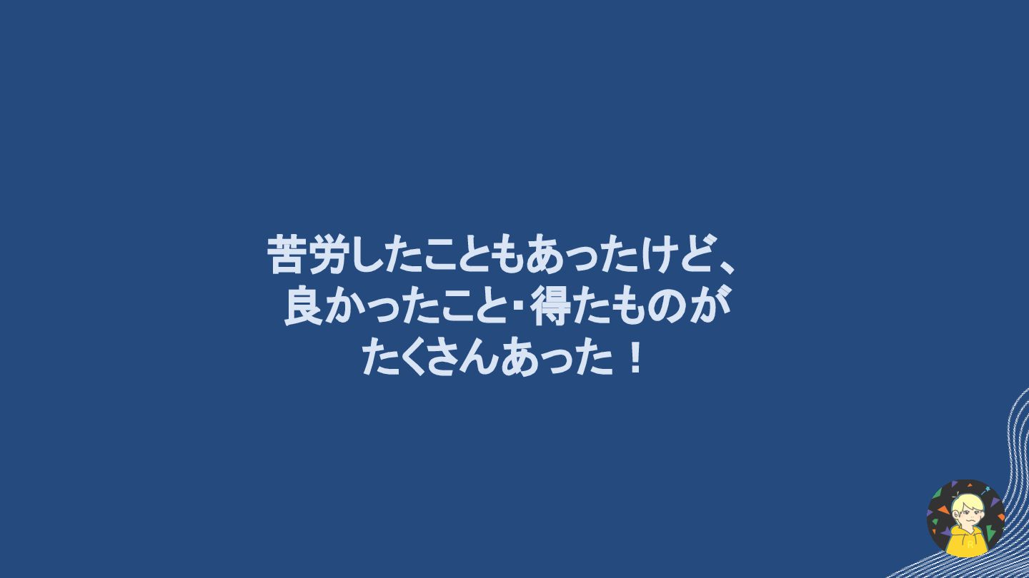 苦労したこともあったけど、 良かったこと・得たものが たくさんあった!