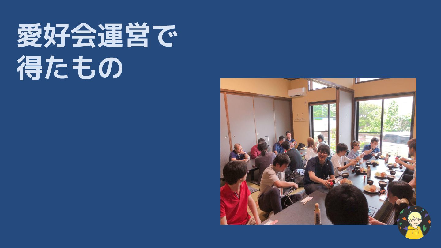 • イベントを設計・開催するスキル💪 ◦ 社内勉強会の立ち上げにも役立った ◦ 人の巻き込み力も上がった • アイデアを形にする能力💡 ◦ 愛好会は「やってみよう!」のスタンスなので、アイデア