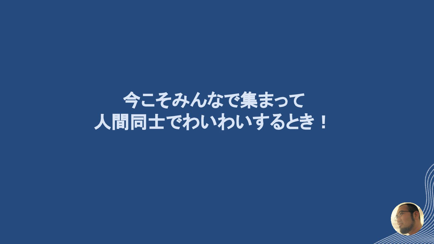 今こそみんなで集まって 人間同士でわいわいするとき!