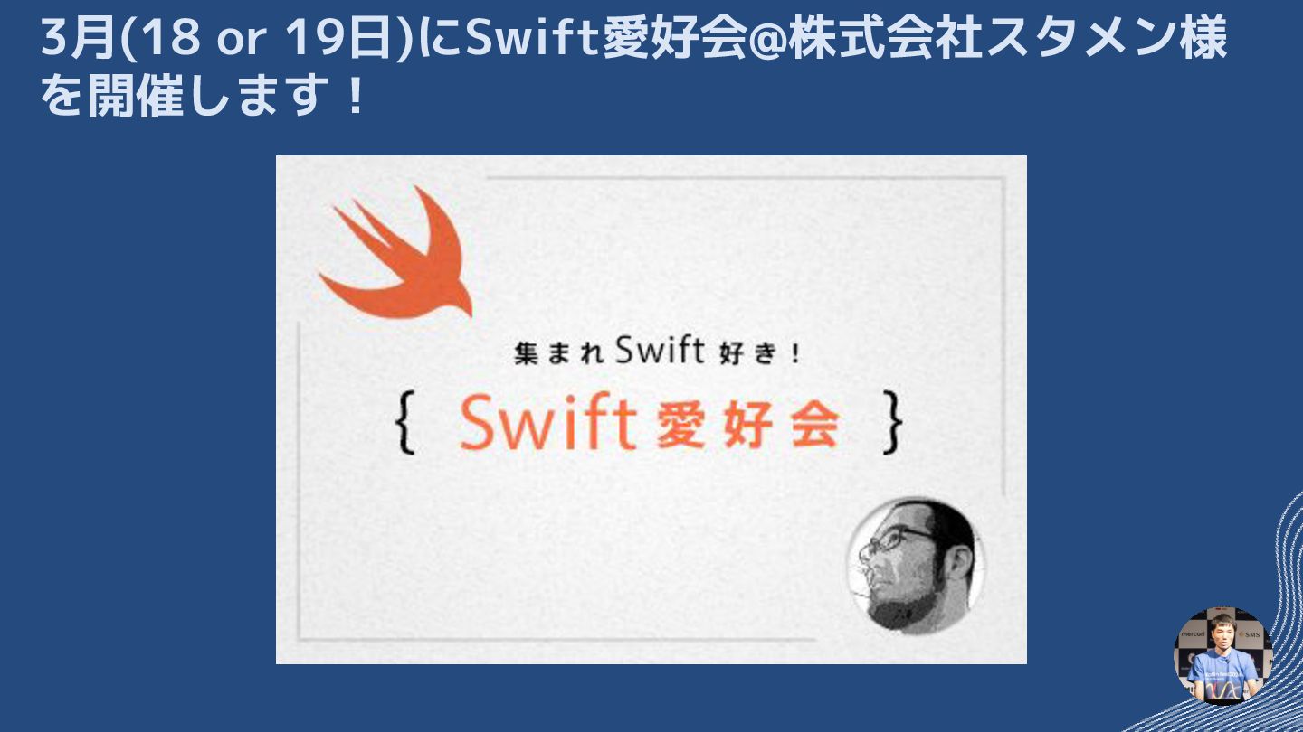 3月(18 or 19日)にSwift愛好会@株式会社スタメン様 を開催します!