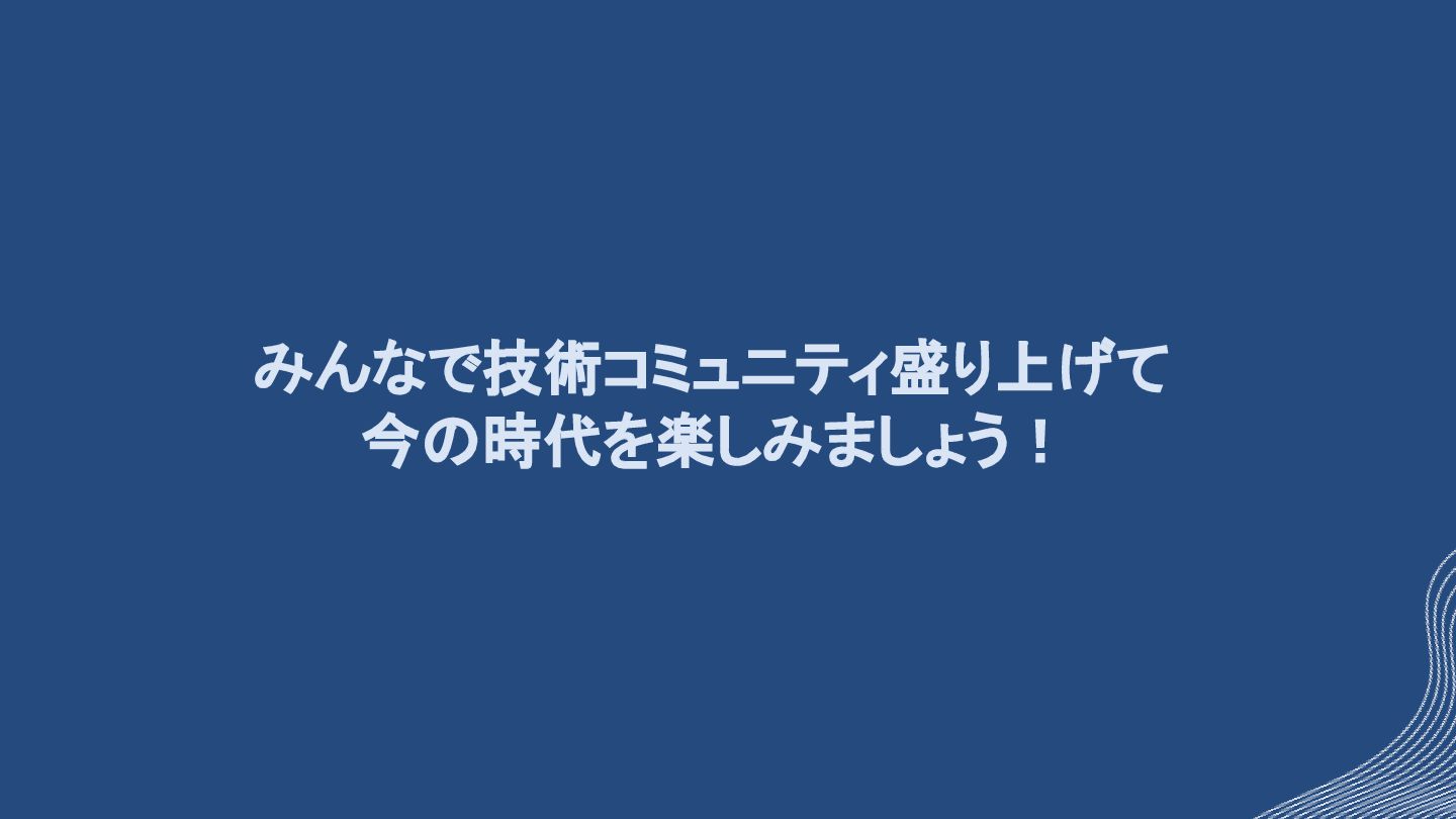 みんなで技術コミュニティ盛り上げて 今の時代を楽しみましょう!