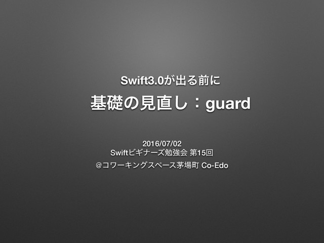 executes statements depending on the Boolean value of an expression. You use a guard statement to require that a condition must be true in order for the code after the guard statement to be executed. ཁifΈ͍ͨͳͭͬͯ͜ͱͰɻ Excerpt From: Apple Inc. “The Swift Programming Language (Swift 2.1).” iBooks. https://itun.es/jp/jEUH0.l