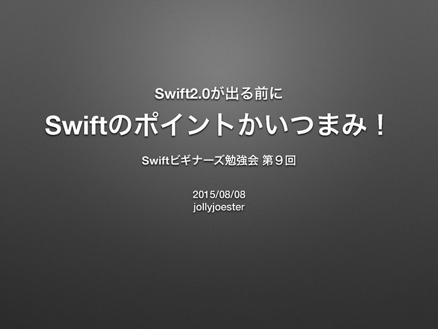 Swift2.0͕ग़Δલʹ SwiftͷϙΠϯτ͔͍ͭ·Έʂ SwiftϏΪφʔζษڧձ ୈ̕ճ 2015/08/08 jollyjoester