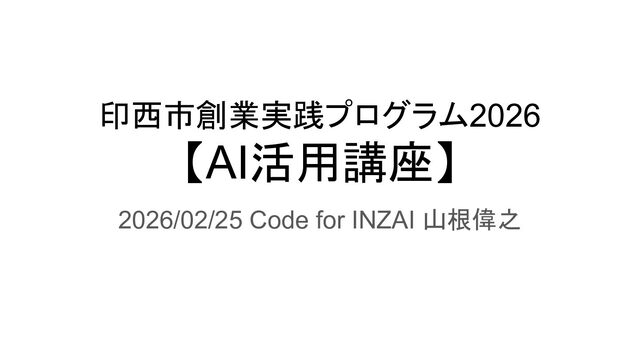 2026/02/25 Code for INZAI 山根偉之 印西市創業実践プログラム2026 【AI活用講座】