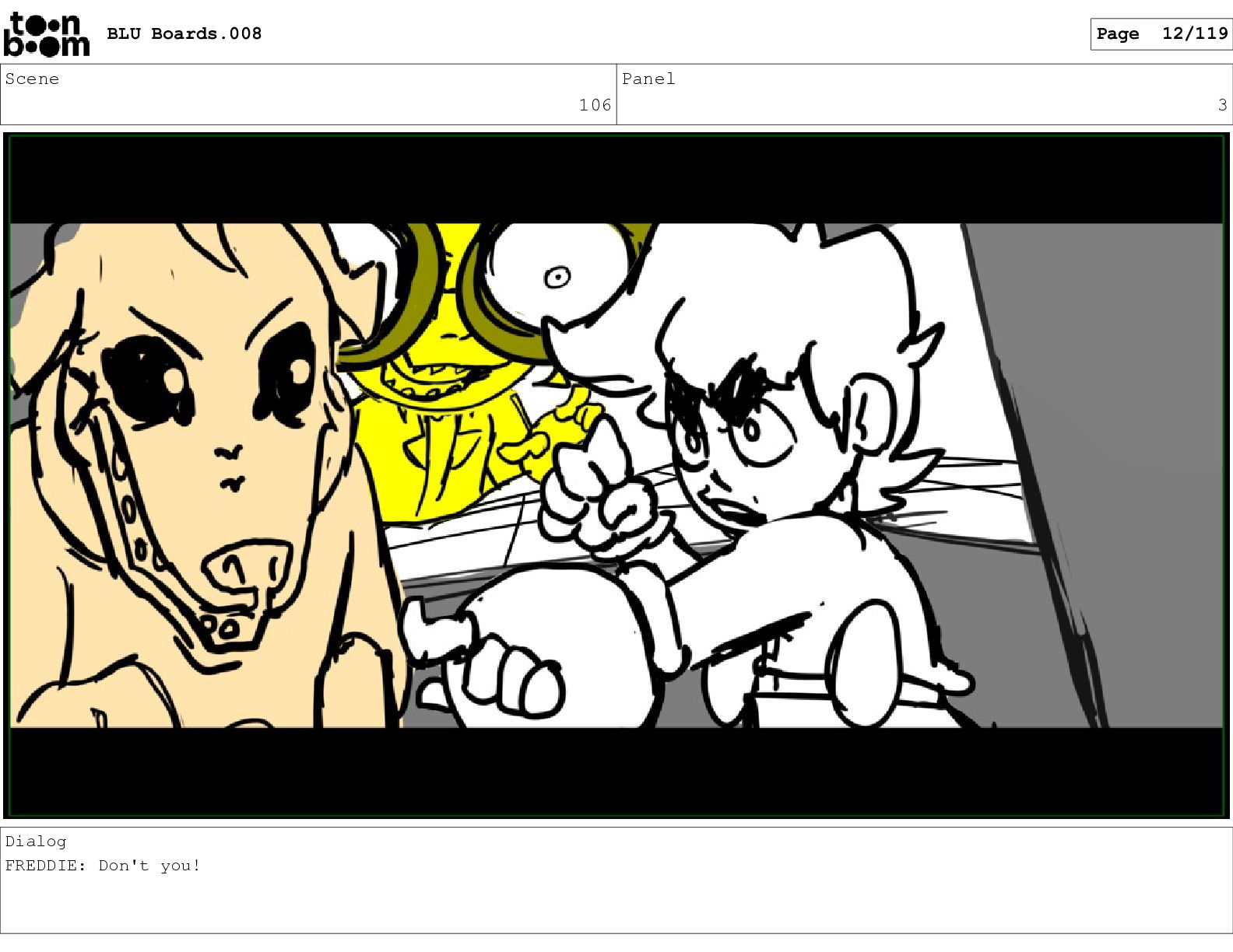 Scene 106 Panel 3 Dialog FREDDIE: Don't you! BLU Boards.008