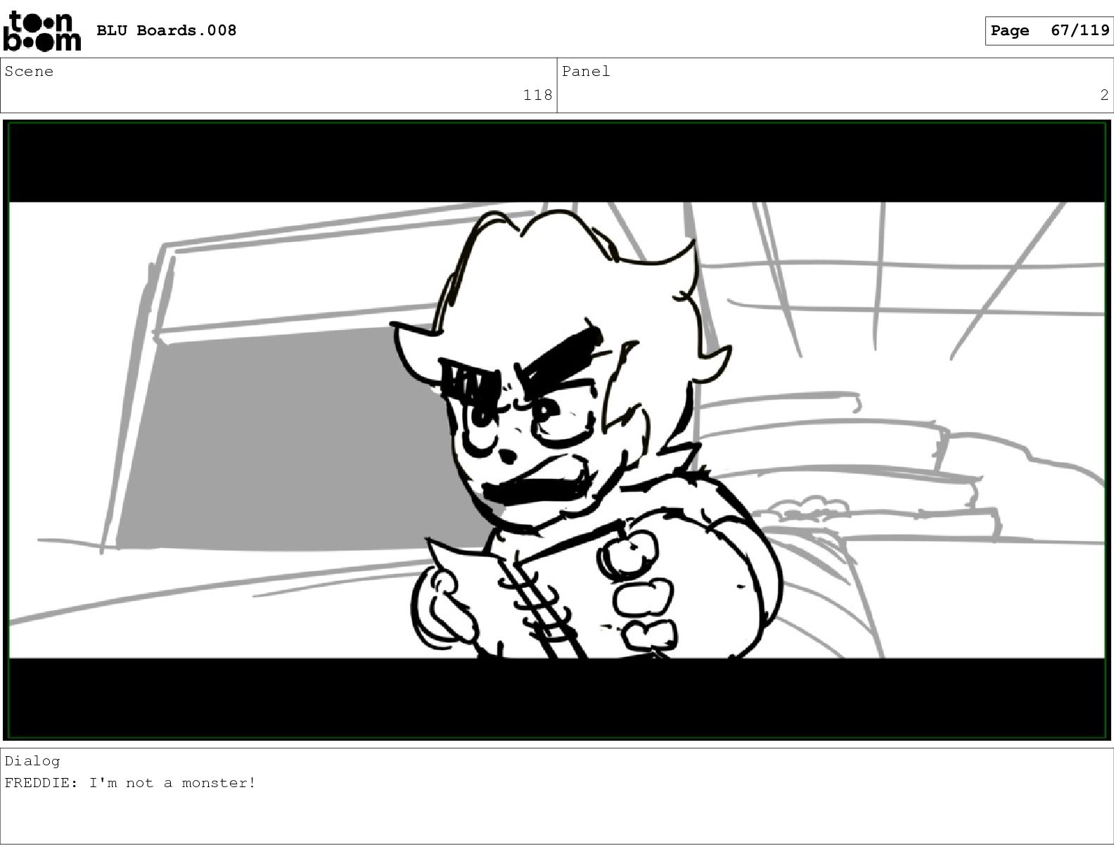 Scene 118 Panel 2 Dialog FREDDIE: I'm not a monster!