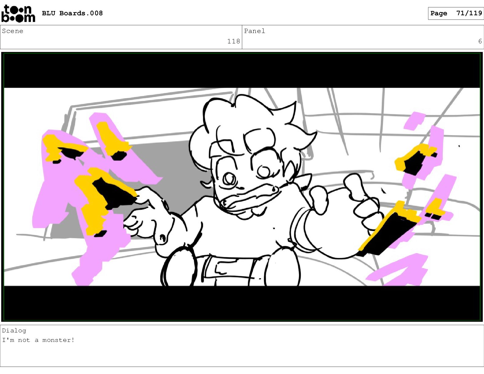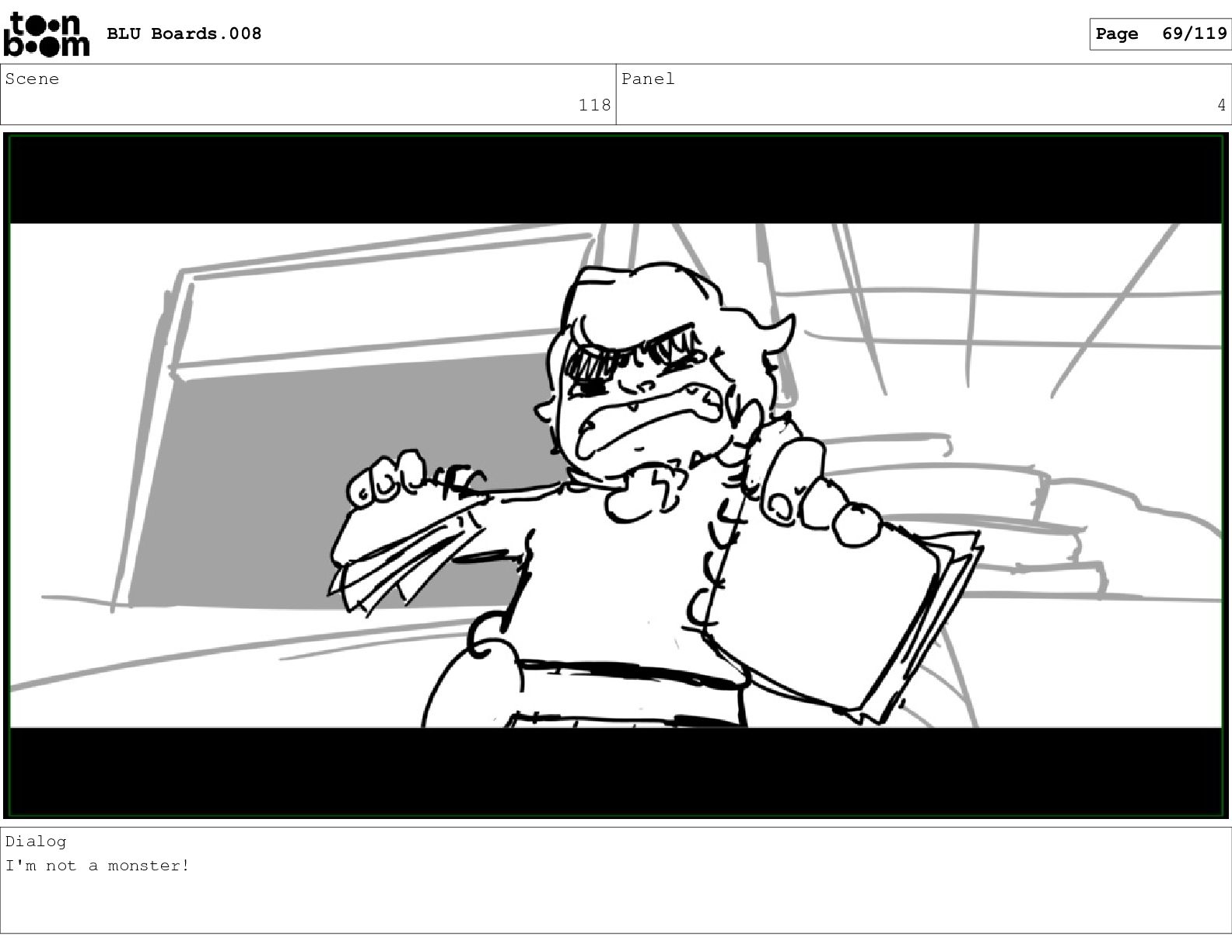 Scene 118 Panel 5 Dialog I'm not a monster! BLU