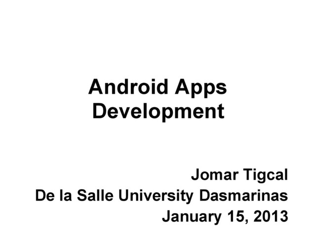 of resources • Apps for smartphones, tablets, TVs, etc • Powerful development framework ◦ SDK provided by Google ◦ Android Emulator • Fun and profit • Marketplace for distributing apps