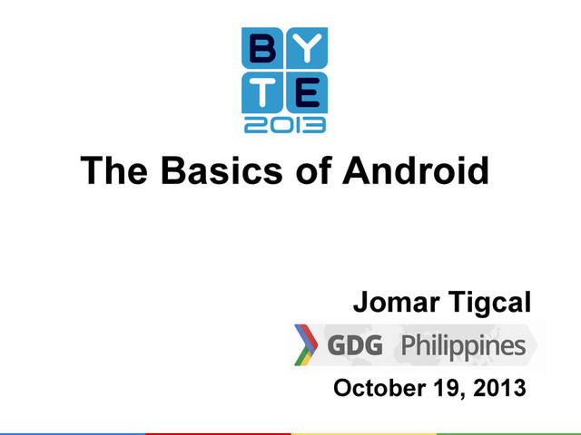 Slides used in my Android talk at Bicol Youth for Technology Exposure (BYTE) 2013 held at Capitol Convention Center, Pili, Camarines Sur last October 19, 2013