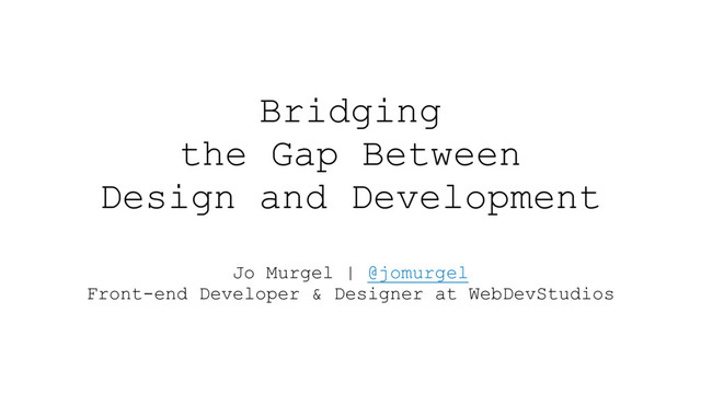 Jo Murgel | @jomurgel Front-end Developer & Designer at WebDevStudios