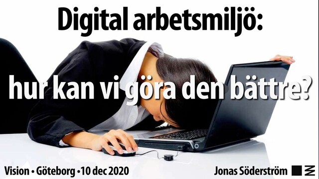 Är det fråga om ”onödiga och oönskade arbetsuppgifter”? • Hur mycket tid tar inloggningar, lösenordsbyten, etc? Digital arbetsmiljö Fysisk arbetsmiljö Organisatorisk och social arbetsmiljö