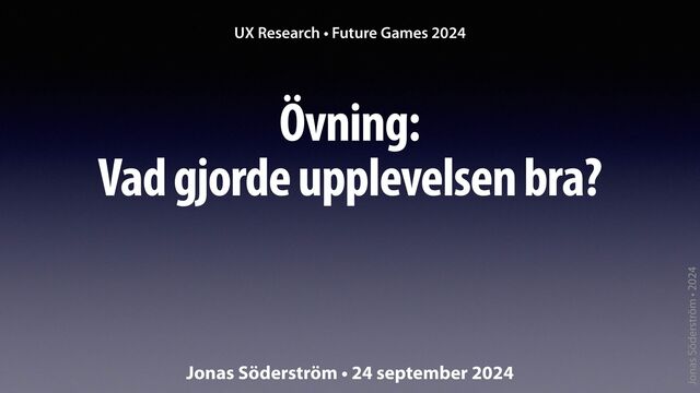 upplevelse • Processen • Resultat, bli klar • Första gången! Något nytt! • Förhoppning • Få uppskattning • Snabb respons • Kontroll • Säkerhet • Dela med andra • Släppa kontrollen • Överträ ff a målet • Oväntat. Överraskande • Före-efter- under • Betvinga rädsla •