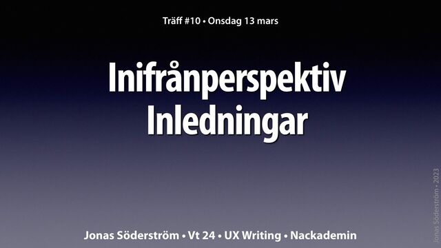Träff #10 • Inifrånperspektiv, ingresser • UX Writing • vt 24 • Nackademin