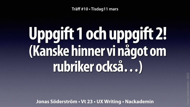 Träff #10 • Uppgift 1 och 2 och Rubriker • tis 14 mars • vt 23 • UX Writing • Nackademin