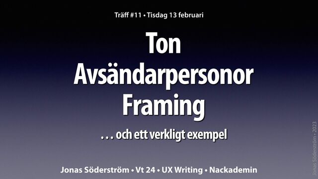 roll, yrke eller personlighet som du tycker passar. • Ge den ett namn, en ålder, en dialekt. • Bygg ut personan genom att avsluta meningar som dessa: • När [namn] pratar känner jag mig … (inspirerad / intresserad / hemma / i trygga händer ...) • [Namn] är ... (snar till skratt / alltid korrekt / på min sida / coachande / en rolig fan...) • [Namn] skulle aldrig ... (slänga på luren / yttra ett enda ord corporate bullshit / fl ytta från kommunen / glömma att kolla om jag verkligen har förstått...) • [Namn] vet…, [Namn] kan … (och så vidare)