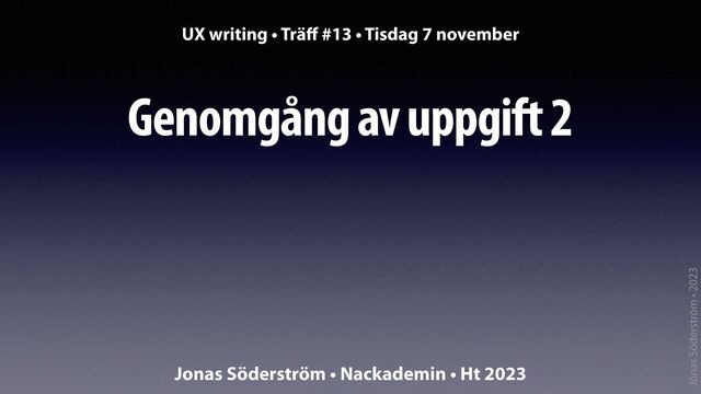Träff #13 • Genomgång uppgift 2 • Tis 7 nov • ht 23 UX Writing • Nackademin