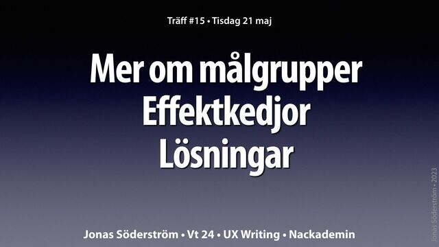 Träff #15 • Mer om målgrupper, effekter, lösningar • Tisdag 21 maj • vt 24 • UX Writing • Nackademin