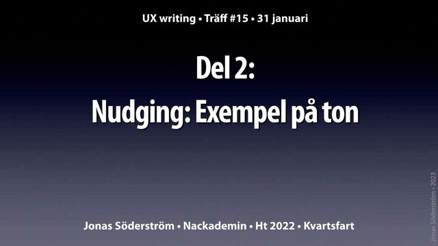 att påverka i riktning till ett önskat beteende. • Mindre att undervisa/förklara. En de fi nition är att nudging inte tillför ny information, bara påminner. • Designval som framhäver ett alternativ, och gör andra mindre omedelbara.