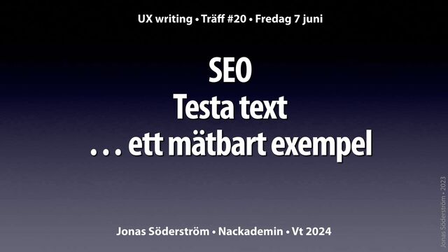 1. Jonas Söderström • 2023 SEO Testa text … ett mätbart