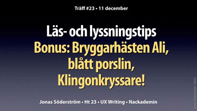 2. Jonas Söderström • 2023 Avslutning, bok- och lästips, Tisdag December
