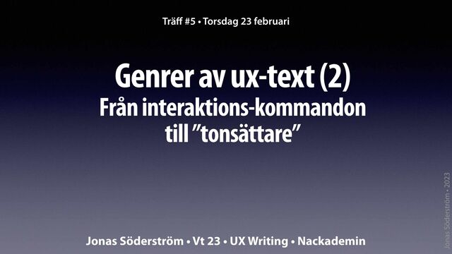 av ux-texter: från interaktions-kommandon till ”tonsättare” Permanenta och temporära ux-texter UX-bonus: Ännu fl er ux-ord! Service design / Design thinking