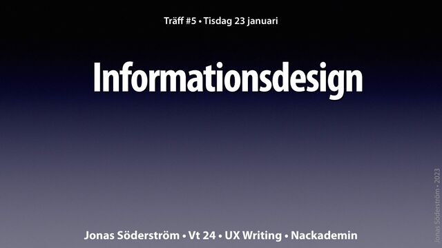 9. Jonas Söderström • 2023 Informationsdesign är strängt taget två saker: