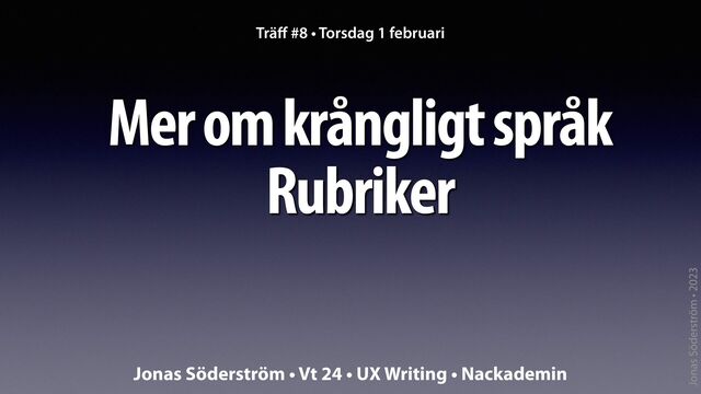 Träff #8 • 1 feb • Mer klarspråk, rubriker • UX Writing • vt 24 • Nackademin