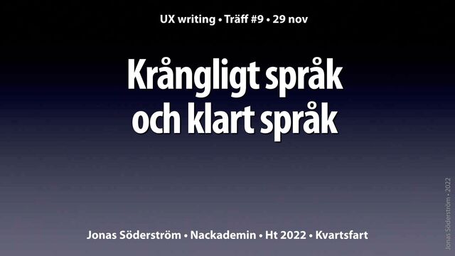 UX writing • Trä ff #9 • 29 nov Jonas Söderström • Nackademin • Ht 2022 • Kvartsfart