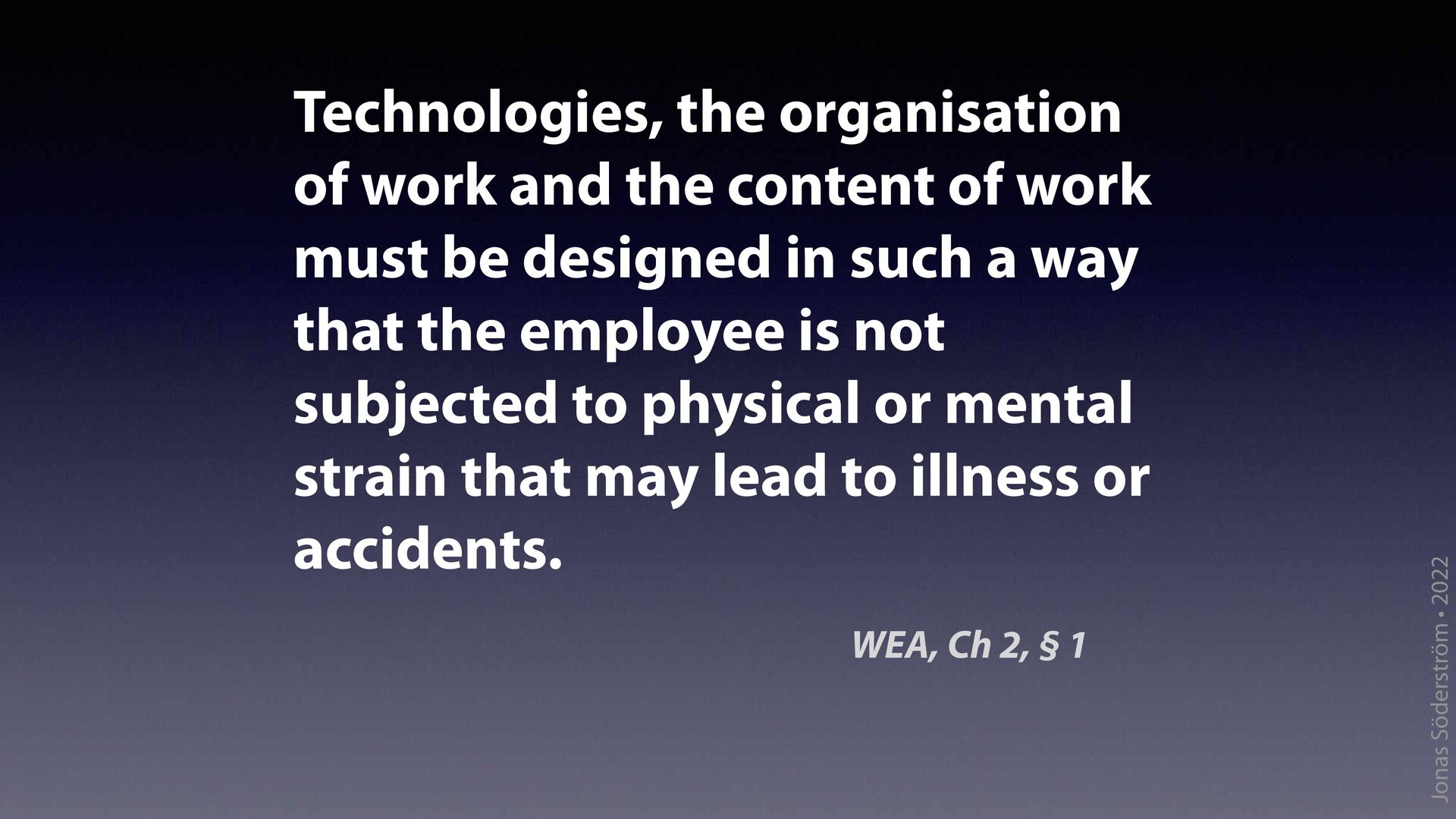 the content of work must be designed in such a way that the employee is not subjected to physical or mental strain that may lead to illness or accidents. WEA, Ch 2, § 1