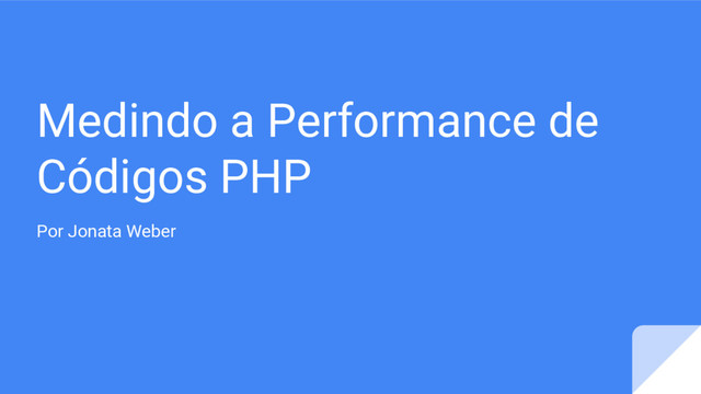 Medindo a Performance de Códigos PHP Por Jonata Weber