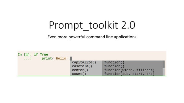 Prompt_toolkit 2.0: Many other improvements • Pygments is optional •