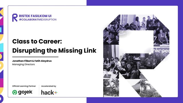 as a community for students to explore technology beyond the classroom. For 32 years, we have been serving as one of the most prestigious community in Universitas Indonesia. Being one of the community with the most competition wins and the go-to place for students to learn unparalleled cutting-edge technology. 32 Years of Excellence. This year, with the increasing need for preparation in facing the workplace, we understand that RISTEK cannot stay as just a community, for the first time ever, we are: A talent incubating platform for students to network, gain mentorship, and carve global impacts to be the next young leaders of the world. Our Mission is to Create a “You” Ecosystem.