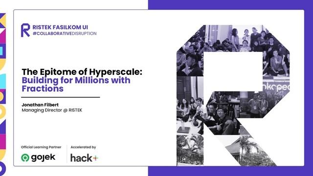 The deck I used to share about hyperscaling an organization and reaching 2 million users while still being an undergraduate. The talk was done as an internal workshop for the technology bureau for the Executive Student Body of the Faculty of Computer Science, Universitas Indoensia.