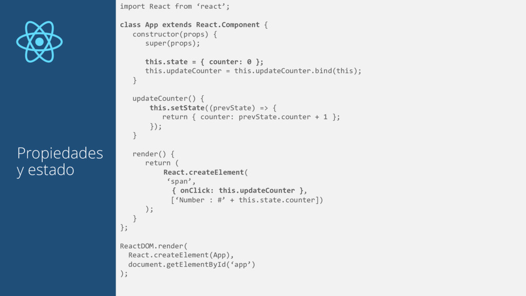 React.createElement(‘p’, null, [ React.createElement(’span’, null, [’Count number: ‘]), React.createElement(’span’, null, [props.children]) ]) ); }; import React from ‘react’; import Counter from ‘./counter’; function App(props) { return ( React.createElement(Counter, null, [0]) ); };