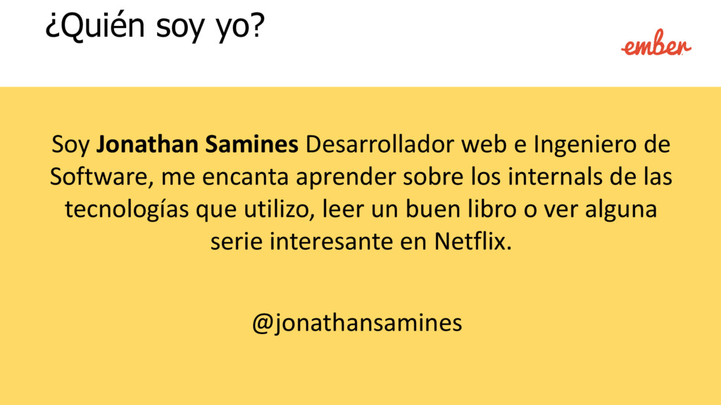 encanta aprender sobre los internals de las tecnologías que utilizo, leer un buen libro o ver alguna serie interesante en Netflix. ¿Quién soy yo? @jonathansamines