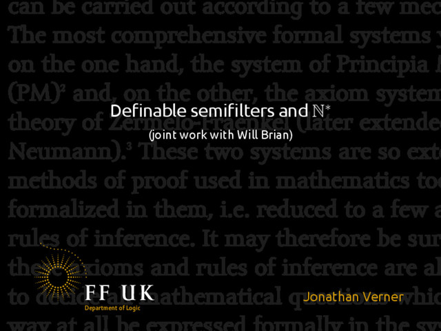 S as a partial order; ultrafilters = maximal filters ▶ d = c gives P-ultrafilters on every Gδ semifilter ▶ weak P-ultrafilters on every co-meager semifilter in ZFC