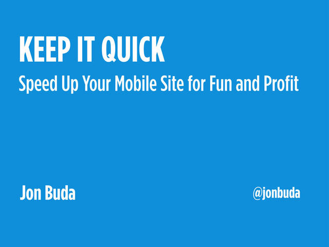 Mobile Camp Chicago 2013. Speed is an important part of mobile design. Learn a bit about why this is so important for engagement and profit, and a few tricks to speed things up.