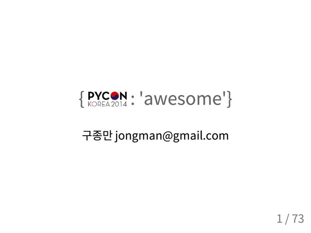 s e r ( o b j e c t ) : d e f _ _ i n i t _ _ ( s e l f , n a m e , e m a i l ) : s e l f . n a m e = n a m e s e l f . e m a i l = e m a i l > > > j o n g m a n = U s e r ( ' j o n g m a n ' , ' j o n g m a n @ g m a i l . c o m ' ) > > > r a t i n g = { j o n g m a n : ' g o o d ' } > > > p r i n t r a t i n g [ j o n g m a n ] g o o d 오 .. 잘 된다 ! 55 / 73