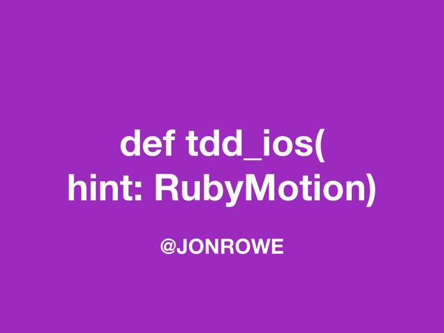 def tdd_ios( hint: RubyMotion) @JONROWE